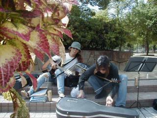 交差点の下に、広い地下通路、そこ自体が広場になっている。